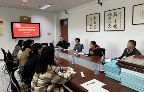 随后,一行人来到河北地质大学。河北地质大学管理学院党委书记周雪对调研团一行表示热烈欢迎。管理学院副院长杨丽花从党的领导、学院简介、主要工作情况等五个方面对学院情况进行了细致介绍。学院践行学校“为资源环境可持续发展提供人才和科技支撑”的核心使命,贯彻执行学校“地经渗透”办学特色,现有会计学、旅游管理、工商管理3个国一流专业建设点;市场营销、电子商务2个省一流专业。突出产教融合,创办数智工商产教融合试点班、智慧物流与供应链管理产教融合试点班、注册会计师产教融合试点班等3个产教融合特色班。之后,管理学院副院长、会计专硕负责人胡海川对财会专业人才培养的具体措施进行了详细介绍,主要提到了最新人才培养方案的修订内容、产教融合校企合作的开展情况、教学案例库的建设情况等方面。双方围绕专业建设、人才培养模式、课程体系优化、产教融合等方面展开深入探讨,分享经验、碰撞思想。经济贸易系教师们认真聆听并记录,就专业群建设、数智化教学改革、实习实训基地共建等问题与管理学院的领导和教师进行了热烈交流。