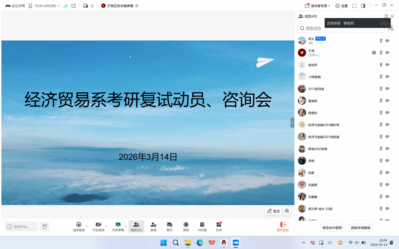 此次线上动员咨询会内容翔实、针对性强,既为学子们明确了复试备考方向,也传递了系部对考研学子的深切关怀与有力支持,有效缓解了同学们的备考焦虑,增强了大家的复试信心与底气。下一步,经济贸易系将持续跟进考研复试进展,落实各项帮扶举措,全程为学子们的研途保驾护航,助力每一位追梦学子圆梦理想。