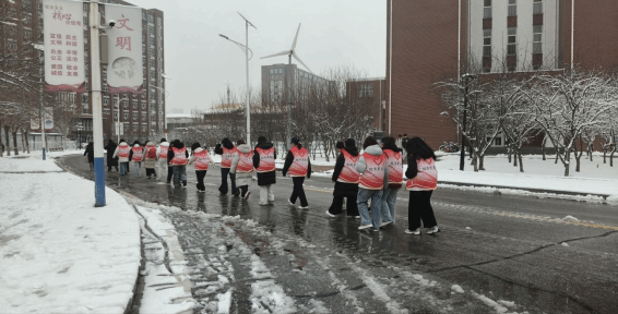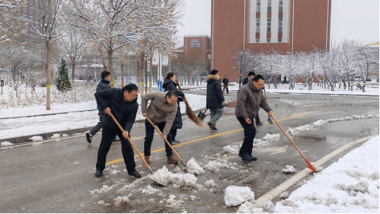为及时清除校园积雪,消除安全隐患,保障师生安全出行,营造整洁有序的校园环境,3月2日,经济贸易系组织学生志愿者开展志愿铲雪服务活动。系党委书记苗立峰,党委副书记任冠华,团委书记房媛媛以及全体辅导员老师统筹部署、现场指导,与志愿者同学们一同参与扫雪工作。