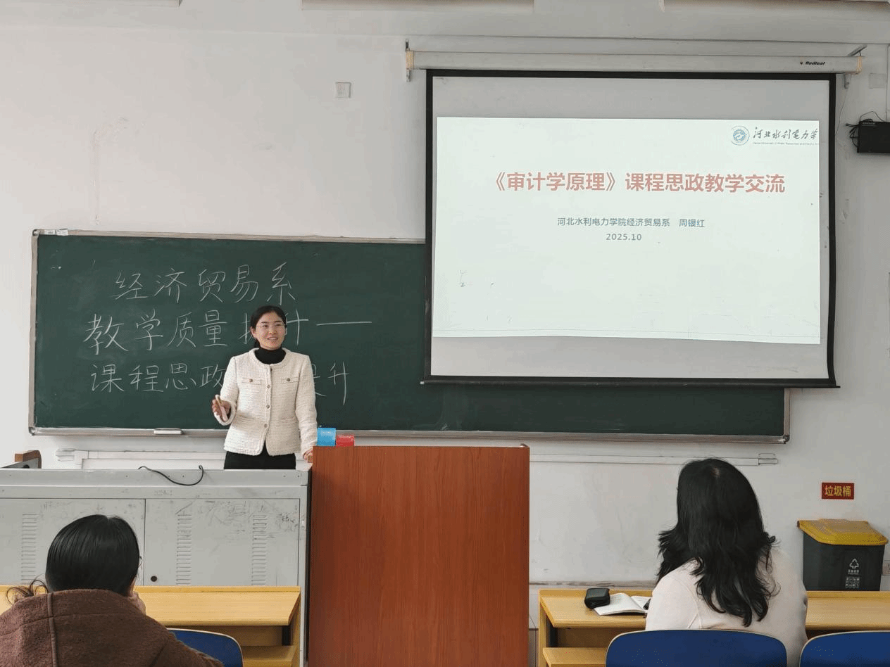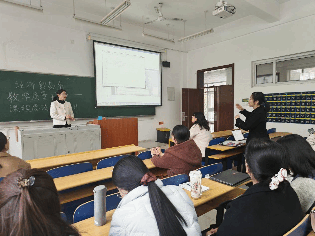为深入贯彻落实立德树人根本任务,切实提升青年教师课堂教学质量,经济贸易系组织召开本学期青年教师教学能力提升系列培训。2025年10月23日,青年教师教学能力提升培训活动正式开展,首期培训主题为“提升青年教师课程思政教学创新能力,推动课程思政与专业教学深度融合”。本次培训由经济贸易系副主任单敏飞主持召开,邀请到高晶、周银红两位经验丰富的教师担任主讲嘉宾,系全体青年教师积极参加了此次培训活动。
